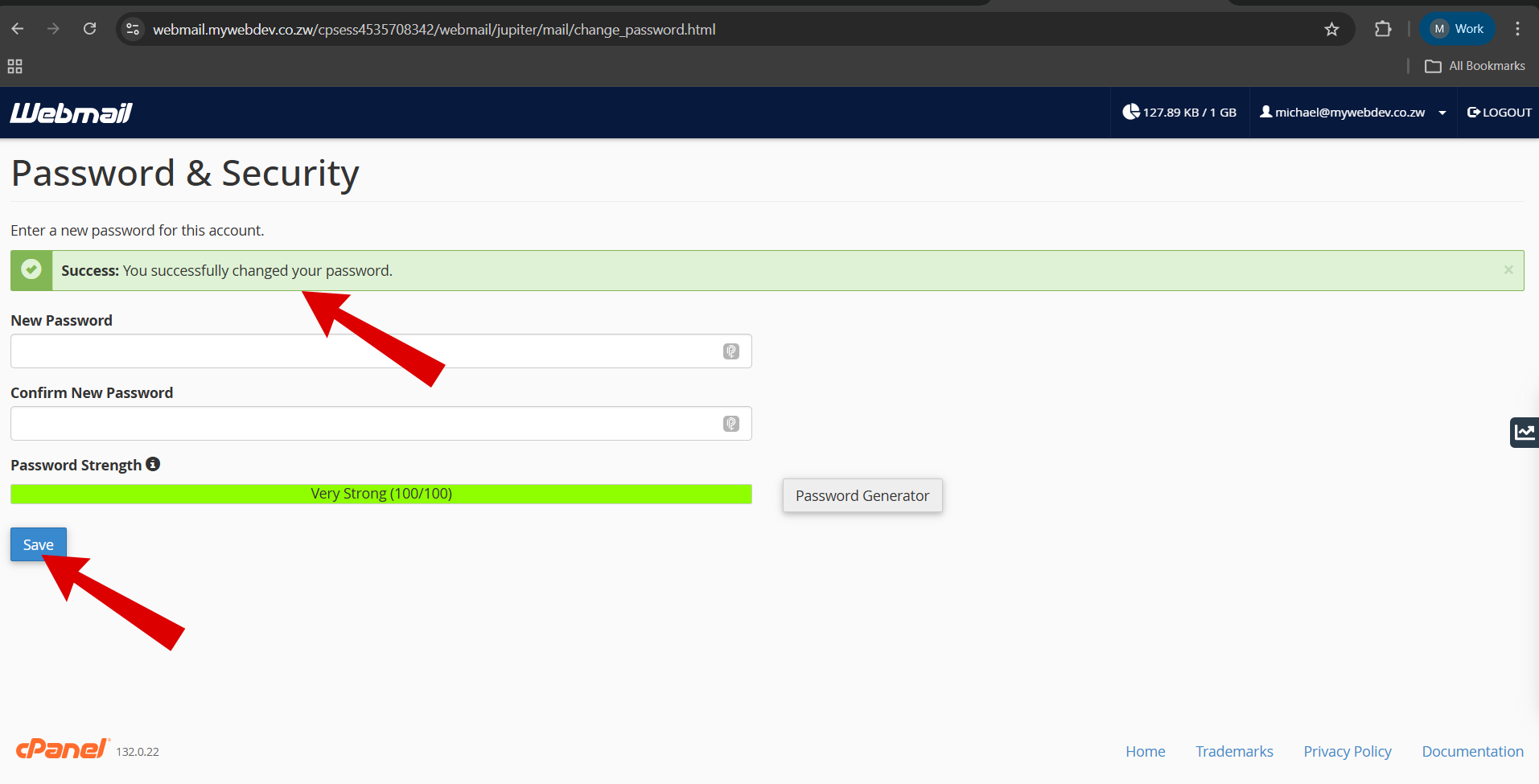 “Success: You successfully changed your password.”